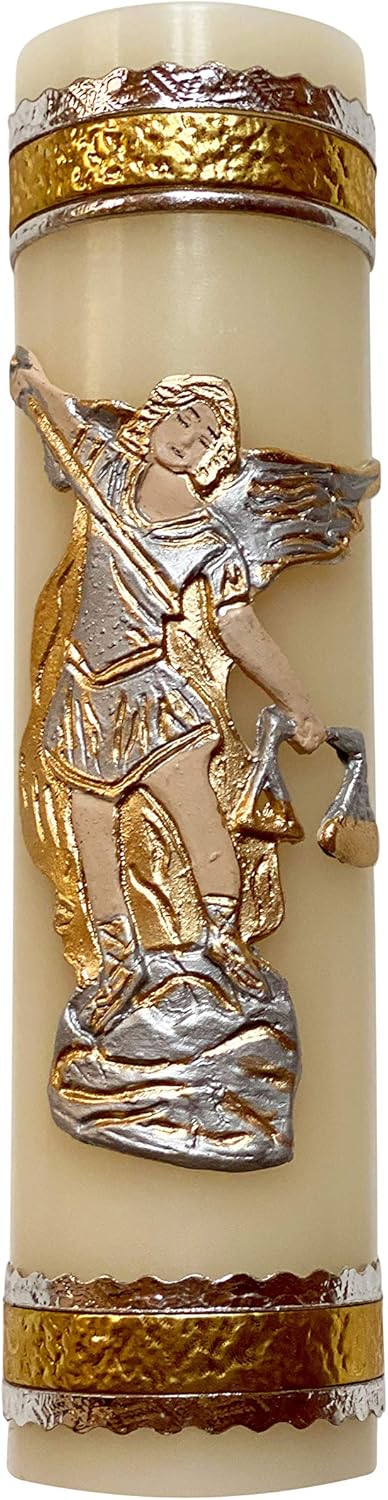 - The candle features a serene image of Archangel Michael, evoking feelings of protection and divine defense againt evil with every light.